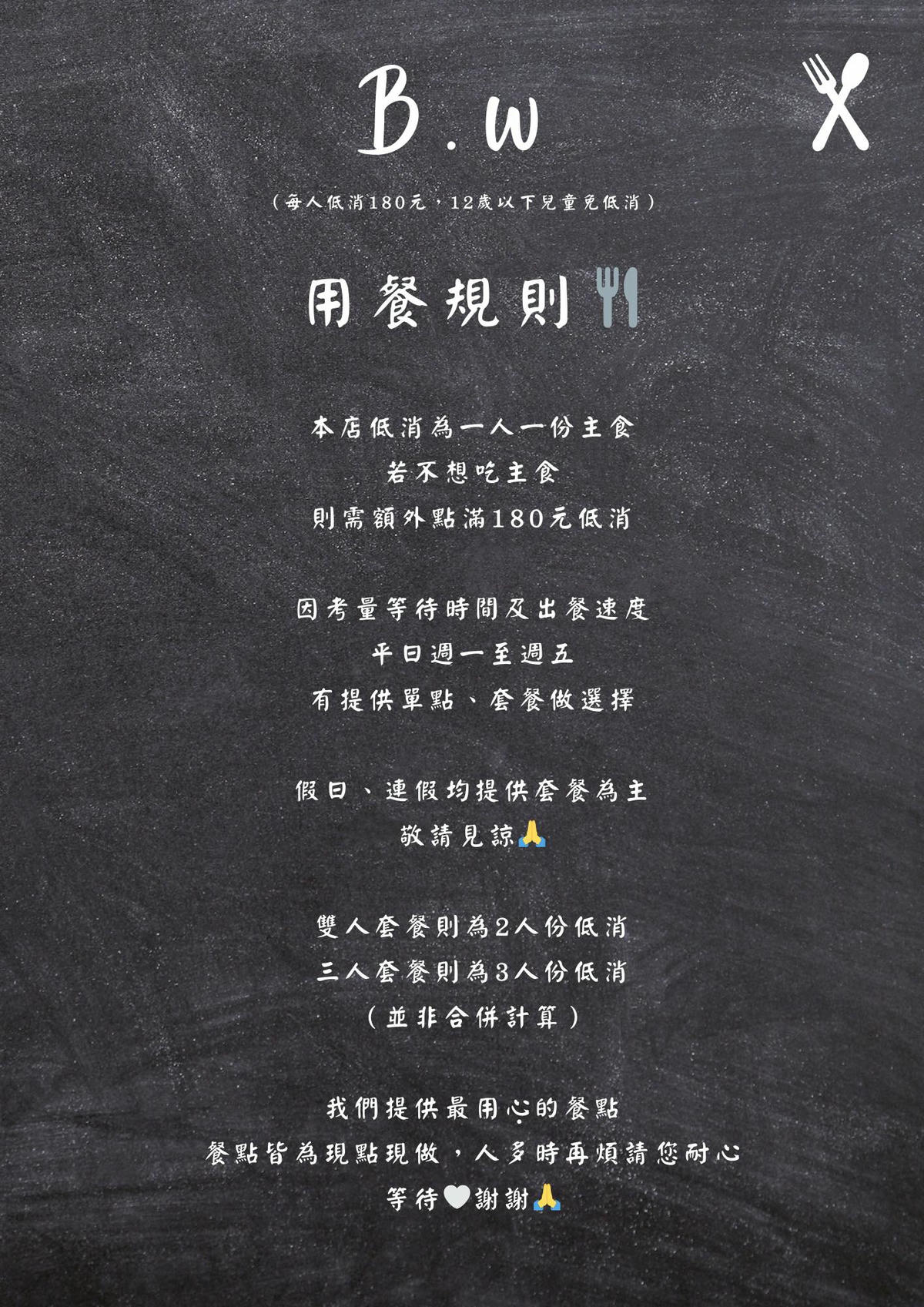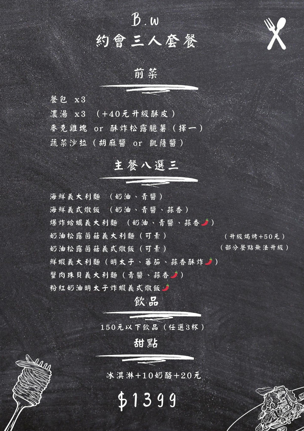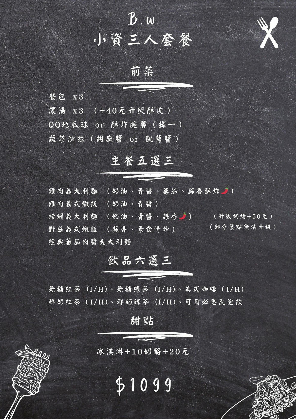 B.W義式料理 |最新菜單