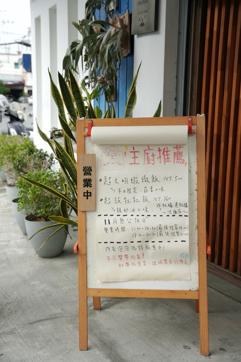 門口的小看板上寫著餐廳今日的主廚推薦菜色。