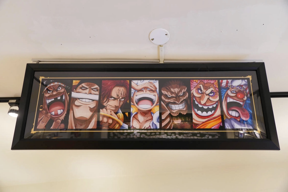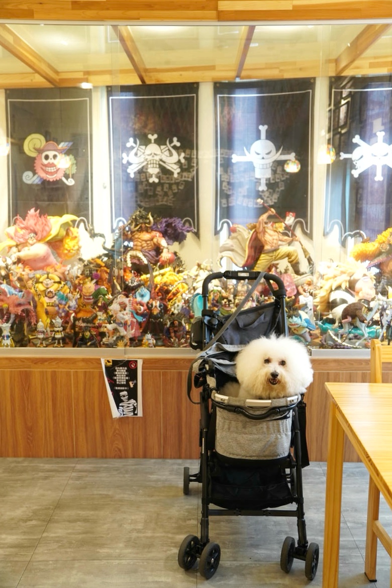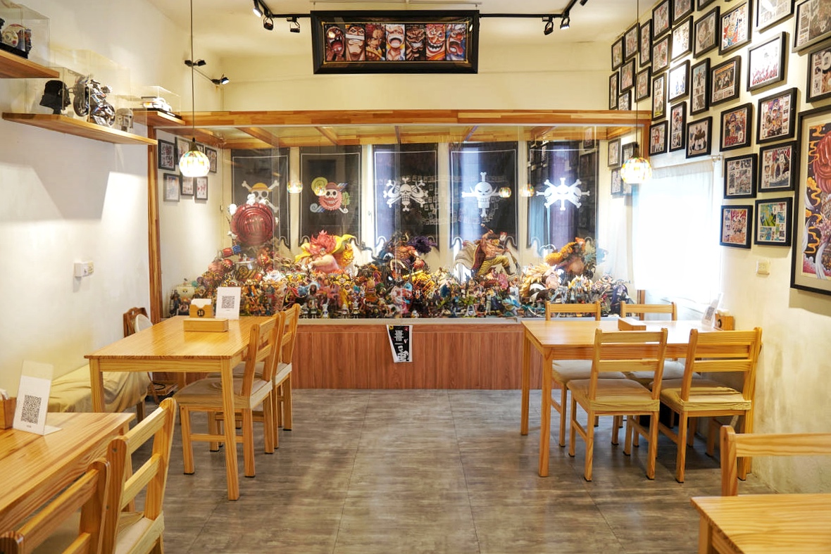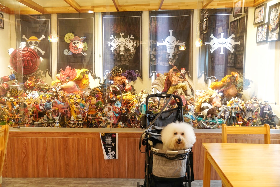 這個空間同時也是老闆的海賊王私人收藏所,牆面上一幅幅的海賊王漫畫手繪裱框,已經夠讓人驚呼,但更震撼的是房間盡頭那滿滿一櫃的海賊王角色公仔!這讓身為海賊迷的冰塊爸超感動!這完全是真愛才會用心蒐集到這麼多吧!
