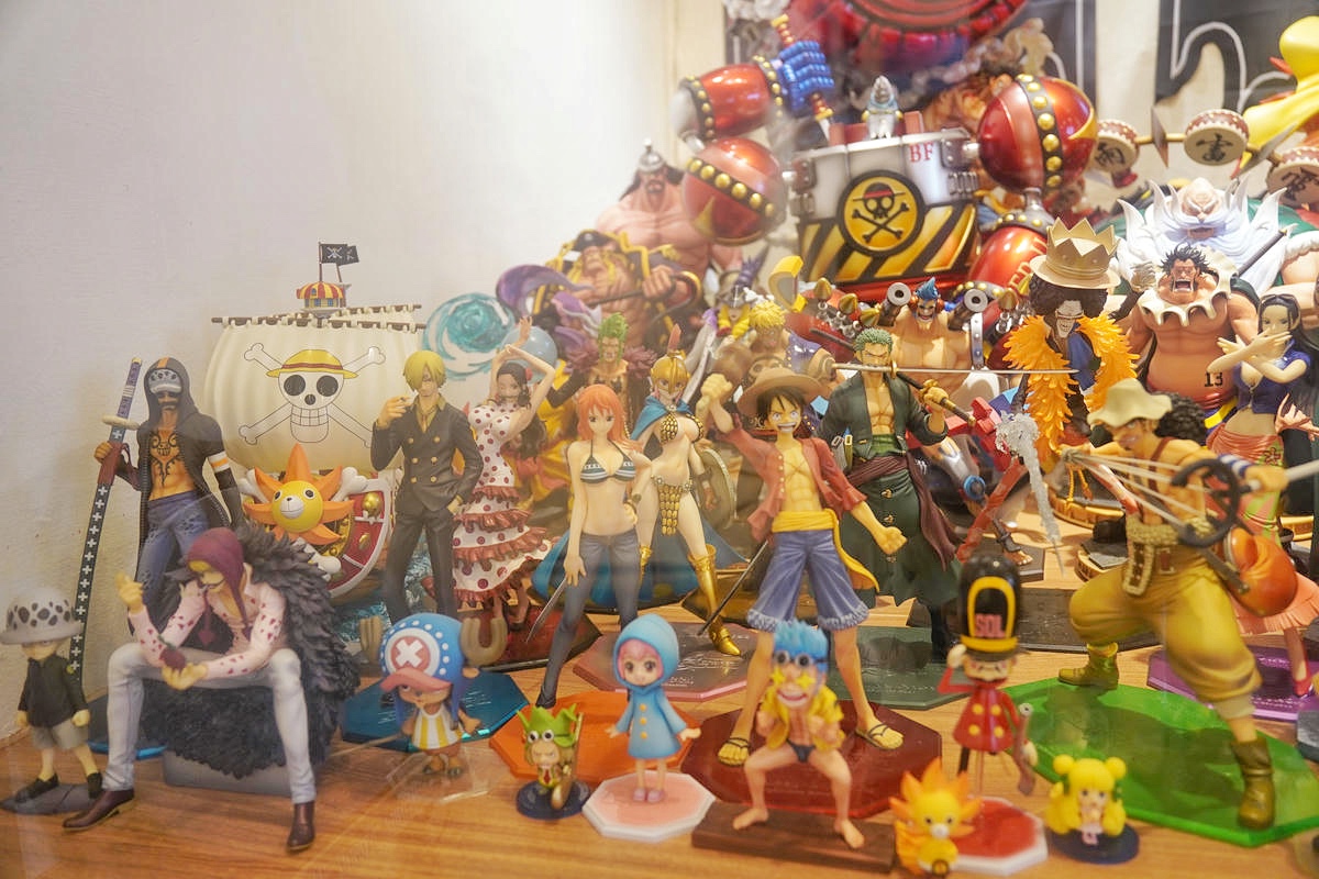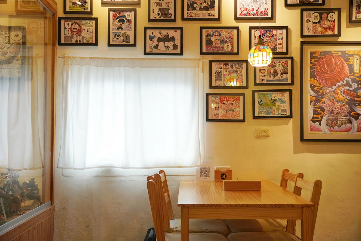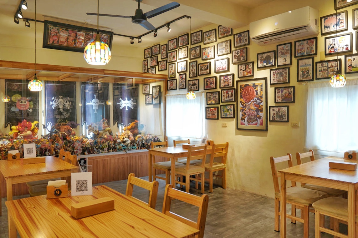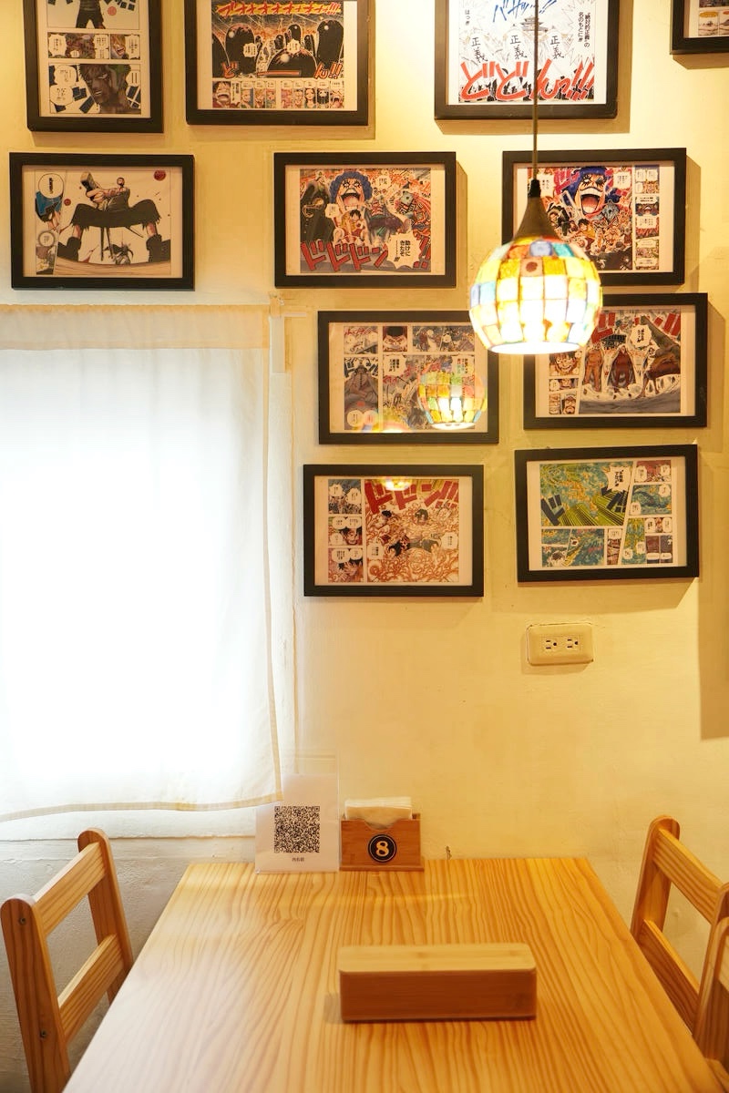 這個空間同時也是老闆的海賊王私人收藏所,牆面上一幅幅的海賊王漫畫手繪裱框,已經夠讓人驚呼,但更震撼的是房間盡頭那滿滿一櫃的海賊王角色公仔!這讓身為海賊迷的冰塊爸超感動!這完全是真愛才會用心蒐集到這麼多吧!