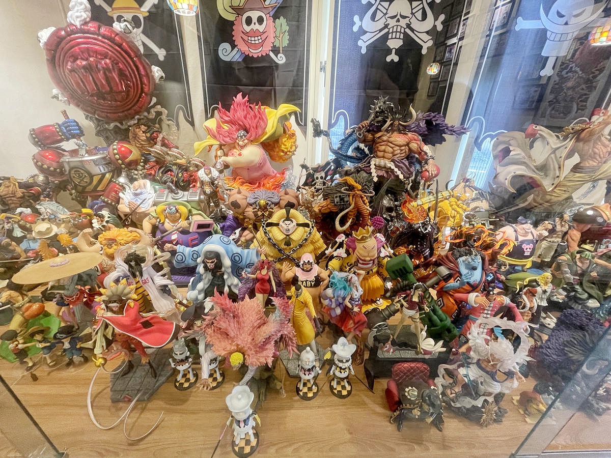 更讓人驚訝的是,每個船長都是巨型公仔,魯夫的三檔、四檔、白鬍子跟黑鬍子,五個船長站在那邊整個超有存在感。更厲害的是,老闆不只是收集那些熱門角色,連一些比較少人注意的二線船員也都有,完整度超高啊!