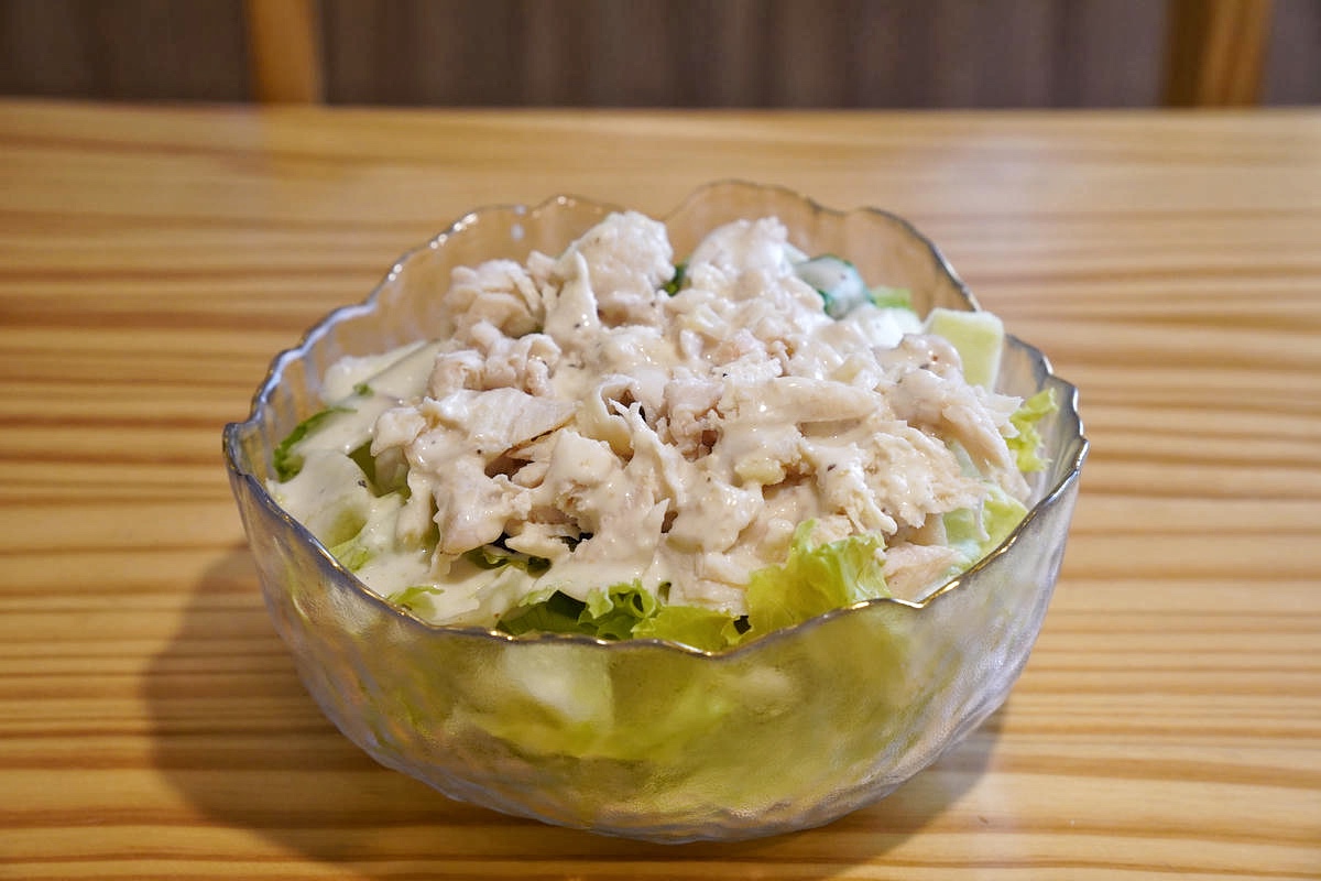我們選擇的沾醬是凱撒醬,搭配舒肥後的雞肉,口感軟嫩不乾柴。