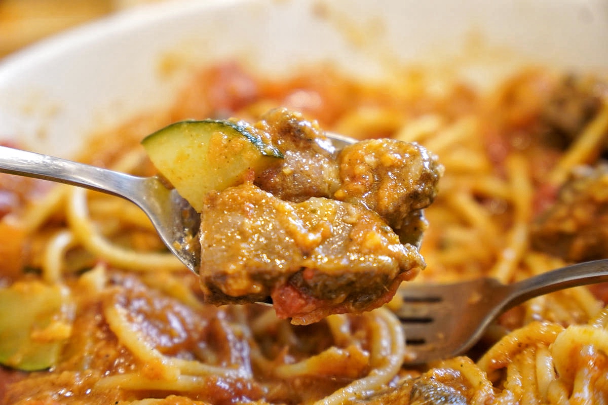 另一道「紅醬火山爆發豬義大利麵」也是相當有亮點的主菜!