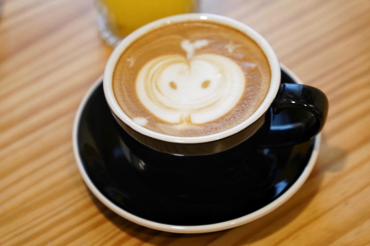 熱拿鐵上桌時就讓我驚喜了一下,因為上面居然有一個超可愛的蘋果拉花,看著心情就超好啊,直接得分!咖啡喝起來也是奶香濃郁,非常順口。