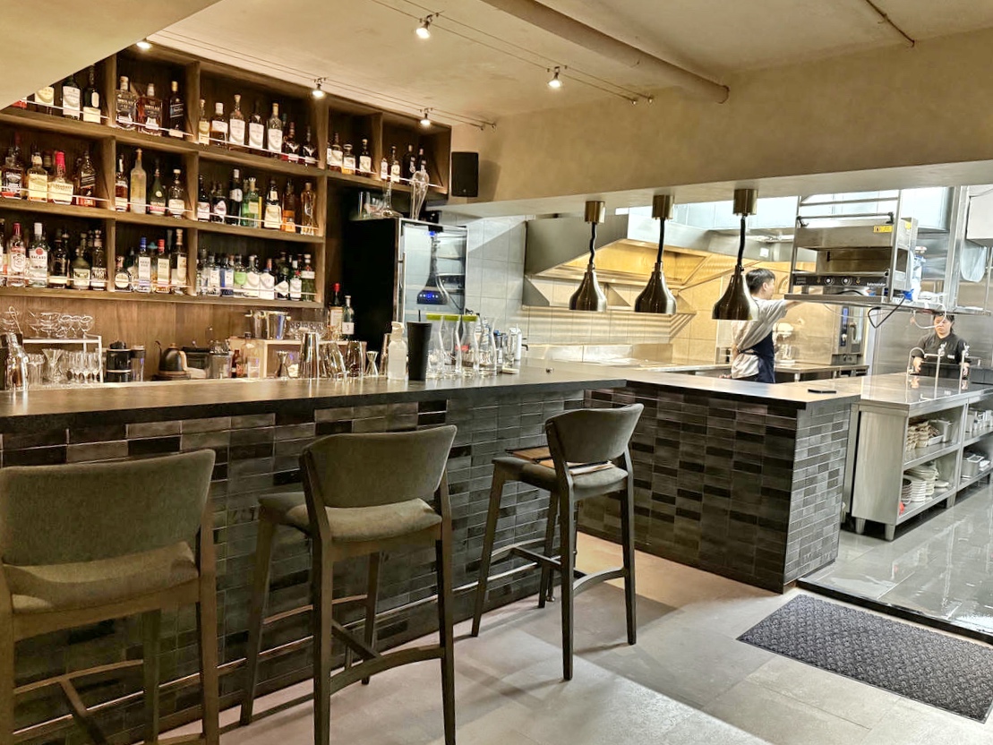再往餐廳後方走,是開放式廚房區域以及酒品吧台。