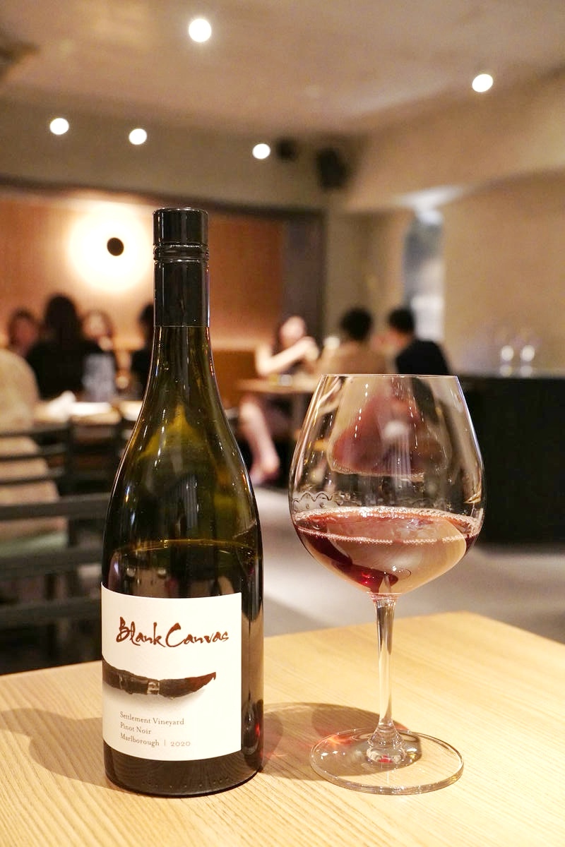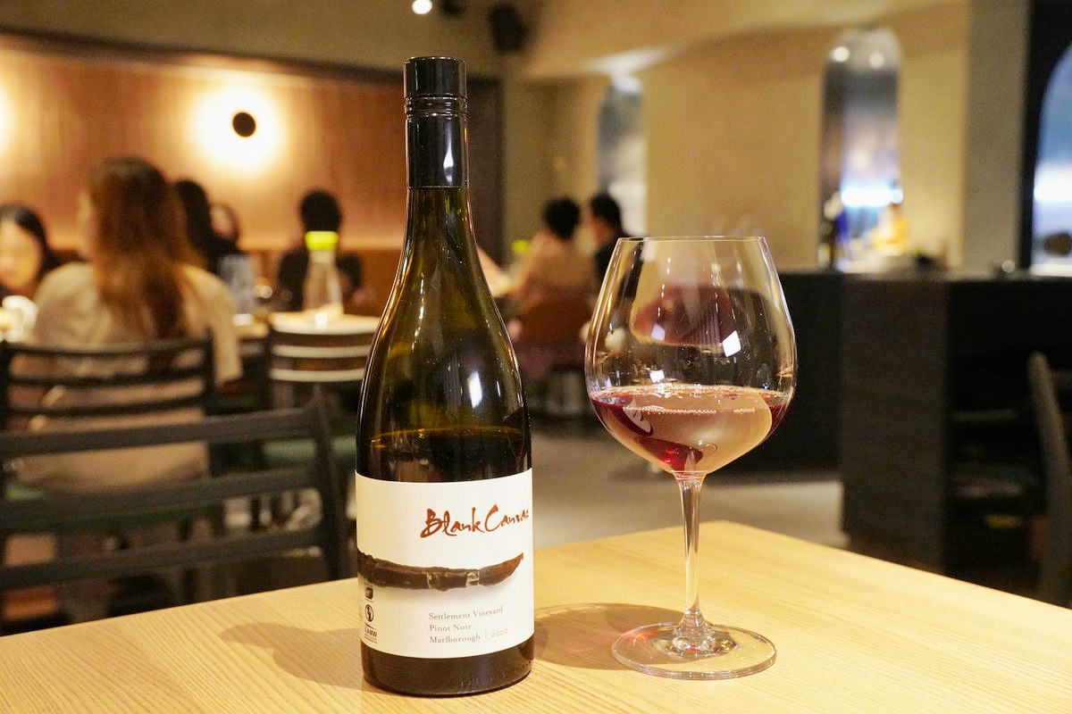 「Oie Taipei 」提供各式白酒、紅酒、威士忌或調酒等搭配餐點,當天因我們的主餐是羊臀肉,因此想選擇紅酒來搭餐,主廚建議可試試紐西蘭黑皮諾「Marlborough Pinot Noir」餐酒,喝起來果香鮮明、酸度適中,溫潤順口不苦澀也不過甜,搭起羊肉實在非常適合。