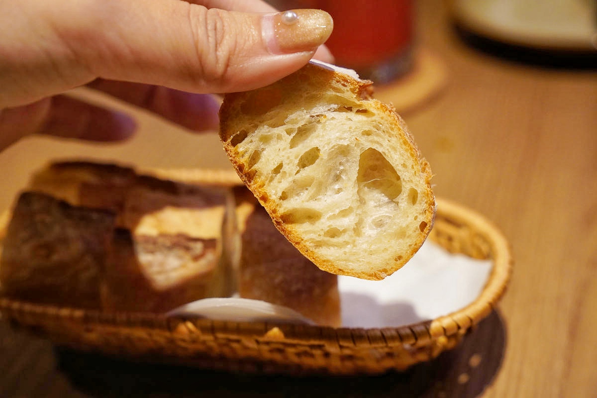 法棍咬起來外皮酥脆,剛咬下就是清脆的卡茲聲響。內餡呈現不規則的蜂窩孔洞狀,富有嚼勁,越咬越香,帶出自然甜味與淡淡的酸韻。重點是這可以無限續耶,店員也會時不時來關心是否需要再加點,超棒。