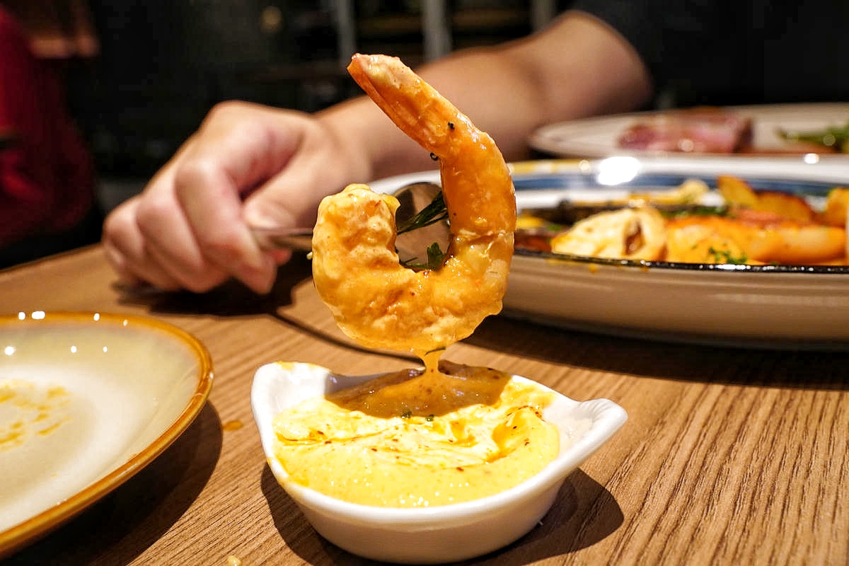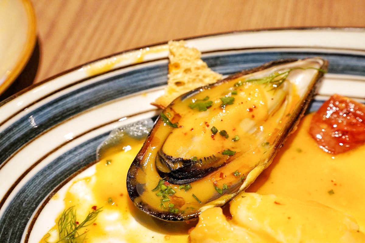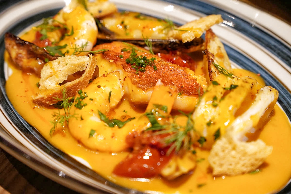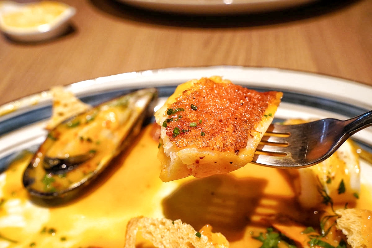 這道菜使用多種魚料、香料和番茄熬煮魚湯,但湯汁幾乎收乾至接近沾醬口感,吃起來是極致濃郁的海味,比起「湯」字的形容,我覺得這道菜倒更像華麗的海鮮總匯料理。